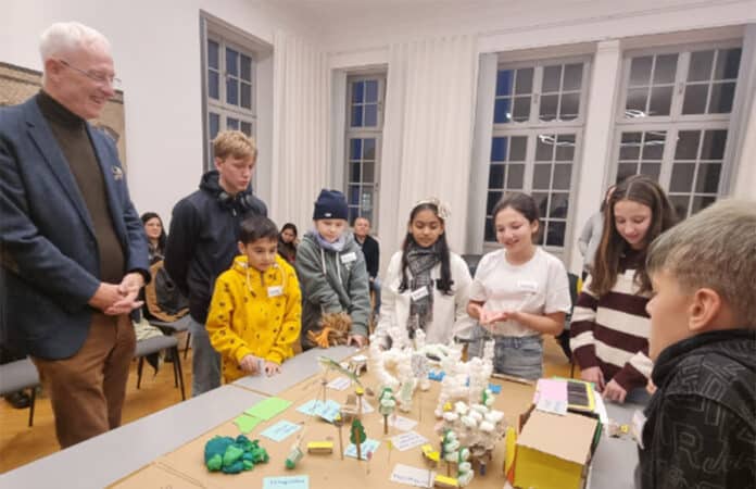 Zusammen mit den beiden Betreuerinnen Sandra Rouhi (Triki-Büro) und Ramona Heeke (Kommunales Bildungsmanagement) sowie ihren Eltern stellten sie es mit einigen originellen Ideen vor, wie einer kostenlosen öffentlichen „Trinkstation“ und einer kleinen Kletteranlage für Kinder am Rand des Platzes. Sie diskutierten mit dem OB auch weitere Details und stellten ihm in einer munteren Runde zudem einige persönliche Fragen, darunter nach dem Lieblingsessen, seinem Berufsalltag und den Schulerfahrungen in der Kindheit.