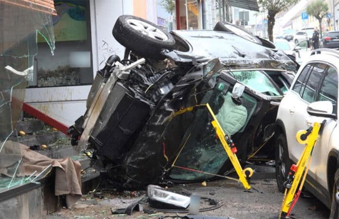 Dabei sei das Fahrzeug nach oben katapultiert worden und im Eingangsbereich eines Gebäudes auf der Seite liegengeblieben. Der 70 Jahre alte Fußgänger erlitt laut Polizei leichte Verletzungen, der 83-jährige Fahrer kam schwer verletzt in ein Krankenhaus. Ein Gutachter soll nun den genauen Hergang des Unfalls aufklären.