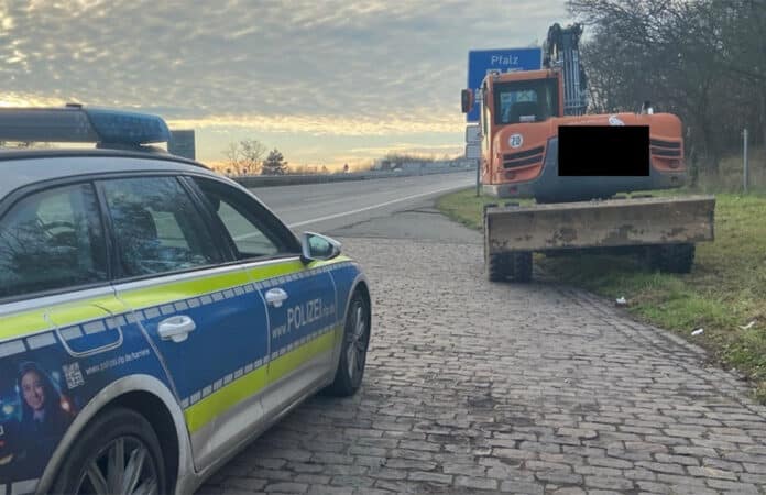 Die Beamten stoppten den Bagger schließlich in einer Nothaltebucht bei Neuleiningen (Kreis Bad Dürkheim).