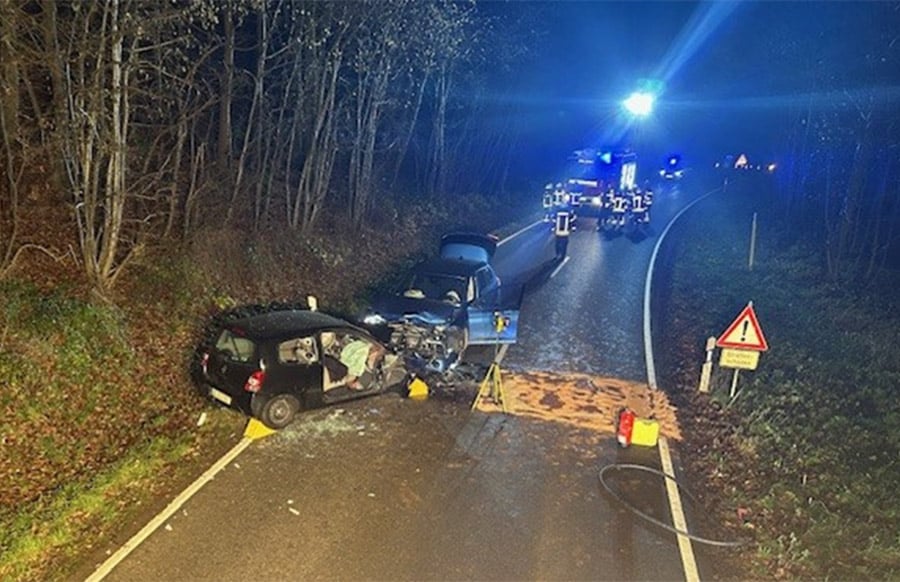ZWEIBRÜCKEN – Am Mittwochabend, kurz vor 19 Uhr, kam es auf der B 424 zwischen den Ortschaften Althornbach und Hornbach (VG Zweibrücken) zu einem Frontalzusammenstoß zweier Fahrzeuge mit zwei verletzten Personen.