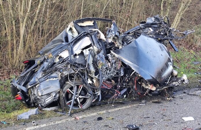 Das Fahrzeug prallte dabei gegen ein Brückenbauwerk, schleuderte weiter und kam erst nach mehreren Hundert Metern völlig zerstört zum Stillstand. Der Fahrer wurde dabei aus dem Wagen geschleudert.