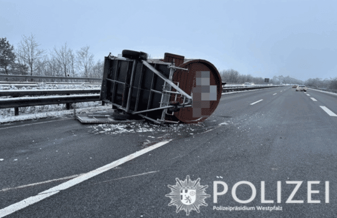 Walshausen. Ein ungewöhnlicher Verkehrsunfall hat am Montagabend die Polizei und Rettungskräfte auf der Autobahn 8 beschäftigt. Ein mit einem Saunafass beladener Anhänger löste sich von einem Fahrzeuggespann, überschlug sich mehrfach und blockierte die Fahrbahn vollständig.