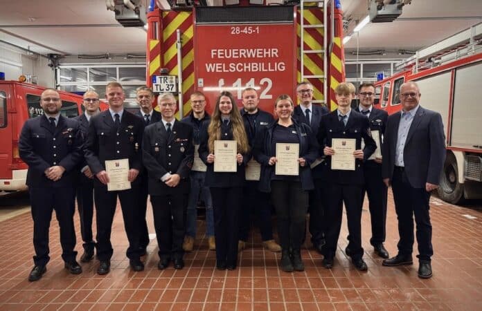 Die Freiwillige Feuerwehr Welschbillig gratuliert allen Beförderten herzlich und bedankt sich beim Bürgermeister für die wertschätzenden Worte und die Unterstützung. Motiviert, gut ausgebildet und kameradschaftlich blickt die Freiwillige Feuerwehr Welschbillig auf die kommenden Herausforderungen im Feuerwehrjahr 2026. (Quelle: Freiwillige Feuerwehr Welschbillig)