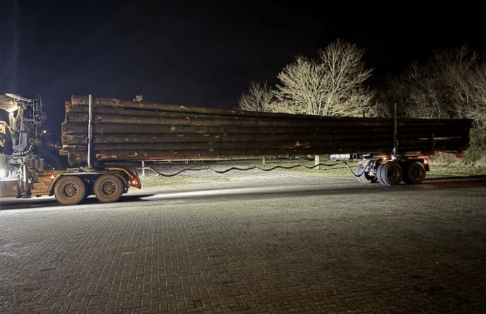 Die Weiterfahrt wurde untersagt. Die Holzstämme mussten umgeladen und anschließend in mehreren Fahrten zum Sägewerk transportiert werden.