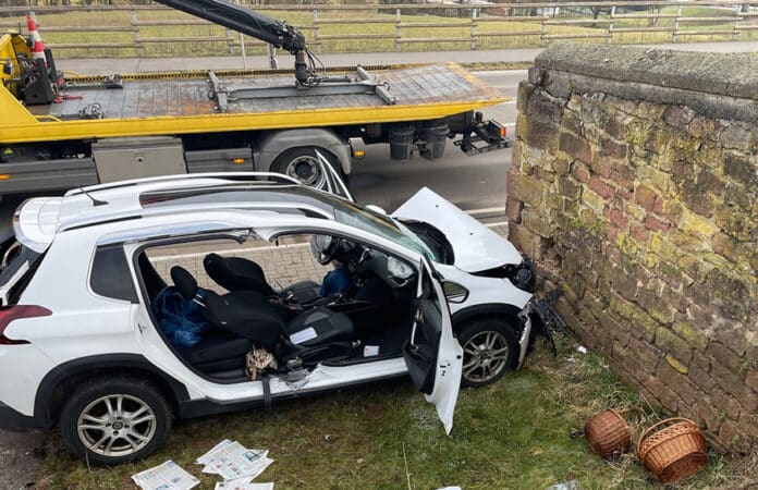 Eine 76-jährige Fahrerin war in Richtung Wartenberg-Rohrbach unterwegs, als sie im Bereich der Pulvermühle nach rechts von der Fahrbahn abkam. Nach dem Überfahren eines Schildes kollidierte der Pkw frontal und ungebremst mit einer Steinmauer. Durch die Wucht des Aufpralls erlitten die Fahrerin und ihr 80-jähriger Beifahrer schwere Verletzungen.