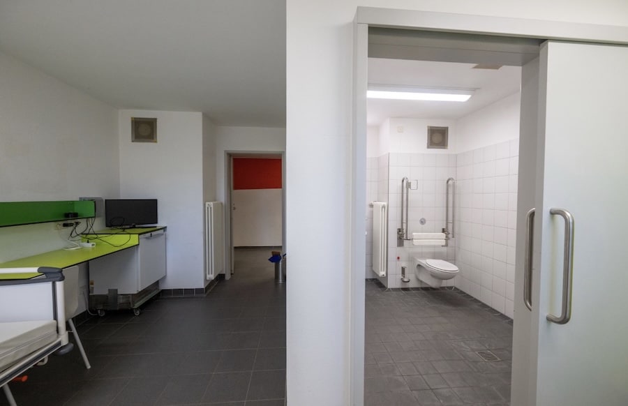 Hier haben Gefangene mit Pflegestufe größere Räume, Pflegebetten, barrierefreie Badezimmer, einen Alarmknopf und eine Gemeinschaftsküche. Im normalen Haftraum gebe es keine Dusche, nur ein Waschbecken mit kaltem Wasser. Und er sei zu klein, um sich darin mit dem Rollstuhl bewegen zu können.