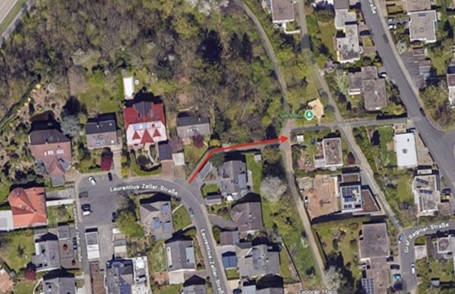 Ein weiterer Zeuge sah um 15.15 Uhr einen vermummten, dunkel gekleideten Mann, der sich von dem Anwesen entfernte und schließlich das Wohngebiet verließ. Sein mutmaßlicher Weg ist auf der Karte eingezeichnet.