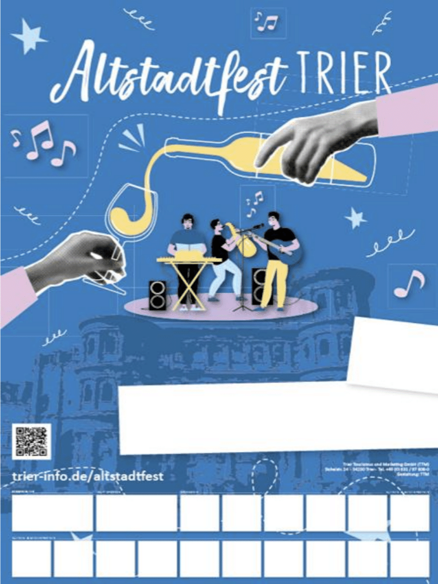 Mit ihrem Entwurf wollte Sonja Feld vor allem die besondere Atmosphäre des Altstadtfestes einfangen: das gemeinsame Feiern, die Musik und die ausgelassene Stimmung in der Trierer Innenstadt.