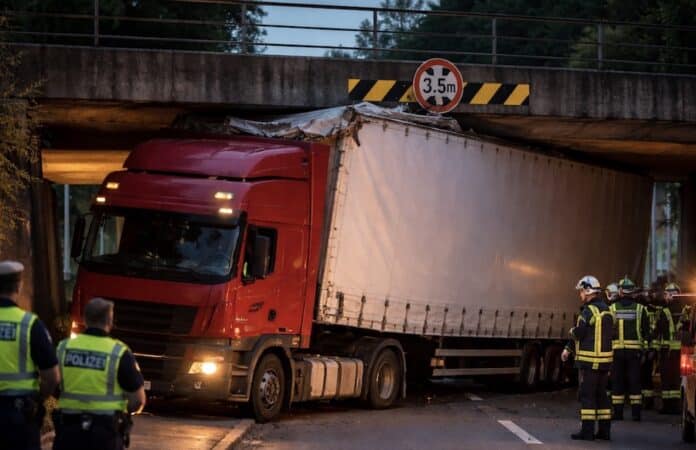 SAARBRÜCKEN. In der gestrigen Nacht kam es gegen 22.30 Uhr im Bereich der Camphauser Straße Fahrtrichtung A623 zu einem Verkehrsunfall eines Schwertransportes. Kurz vorm Übergang zur A623 blieb der Sattelzug mit Auflieger mit einer Klappe, die wohl aufgrund eines technischen Defektes ausgefahren war, an der dortigen Brücke hängen.