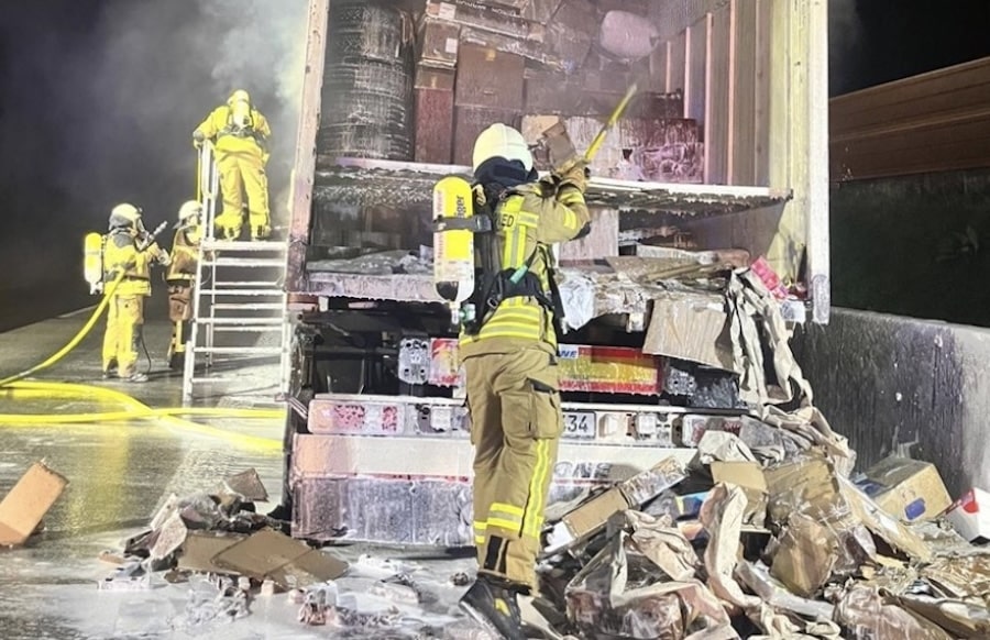 NEUSTADT (WIED). Am gestrigen Freitagabend wurde die Feuerwehr VG Asbach gegen 22.20 Uhr zu einem brennenden LKW auf der Autobahn A3 alarmiert. Ein Anhänger mit Paketen brannte. Die aufwändigen Löscharbeiten dauerten insgesamt rund vier Stunden an. Verletzt wurde niemand.