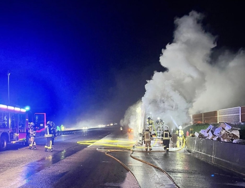 Während der Löscharbeiten musste die Fahrbahn für rund vier Stunden vollständig gesperrt werden. Neben der Feuerwehr Neustadt waren der Rettungsdienst, die Autobahnmeisterei sowie die Polizei im Einsatz. Gegen 3.30 Uhr konnte der Einsatz für die Feuerwehr beendet werden. (Quelle: Feuerwehr VG Asbach)