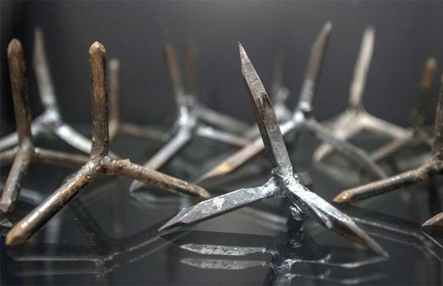Die sogenannten Krähenfüße hätten an mehreren darüberfahrenden Fahrzeugen Reifen beschädigt, teilte die Polizei mit.