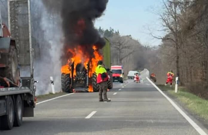 Ein neuwertiger Traktor geriet während der Fahrt samt seinem Anhänger in Brand. Die alarmierten Beamten der Polizei Daun stellten vor Ort fest, dass das Feuer das gesamte Gespann bereits in Mitleidenschaft gezogen hatte. Trotz des schnellen Notrufs konnte eine vollständige Zerstörung des hochwertigen Fahrzeugs nicht mehr verhindert werden.