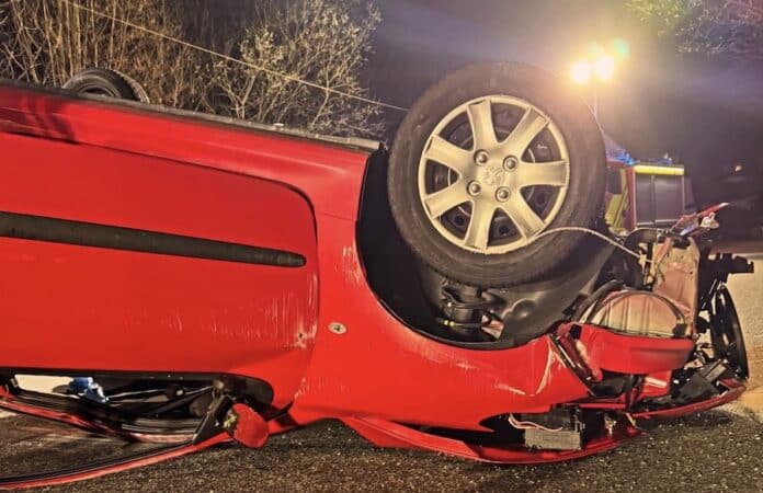 Aus bislang ungeklärter Ursache kam das Fahrzeug nach links von der Fahrbahn ab, überschlug sich und kam wieder auf dem Dach auf der Fahrbahn zum Liegen. Alle Insassen konnten sich selbstständig aus dem Fahrzeug befreien und wurden nach einer medizinischen Erstversorgung in umliegende Krankenhäuser transportiert. Am Fahrzeug entstand vermutlich Totalschaden. Für die Dauer der Unfallaufnahme musste die Fahrbahn für ca. eine Stunde vollgesperrt werden.