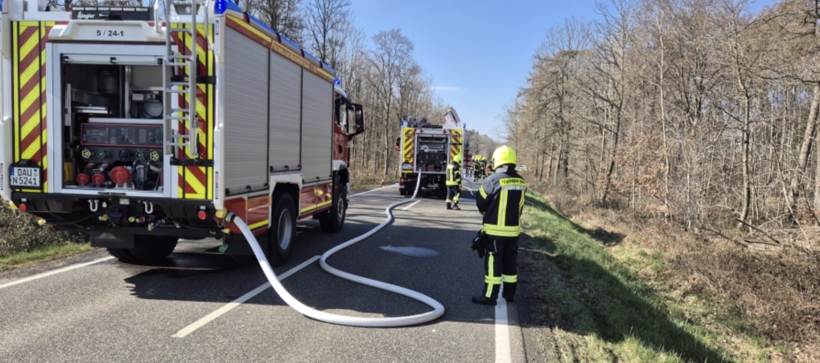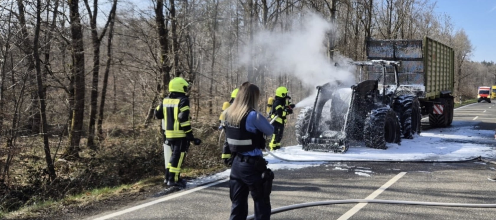 DAUN/GILLENFELD/MEHREN. Am 19.3.2026 wurden das TLF 4000 der Feuerwehr Daun um 13.57 Uhr zusammen mit den Feuerwehren aus Gillenfeld und Ellscheid/Saxler zu einem brennenden Traktor auf die B421 zwischen Gillenfeld und Mehren alarmiert.