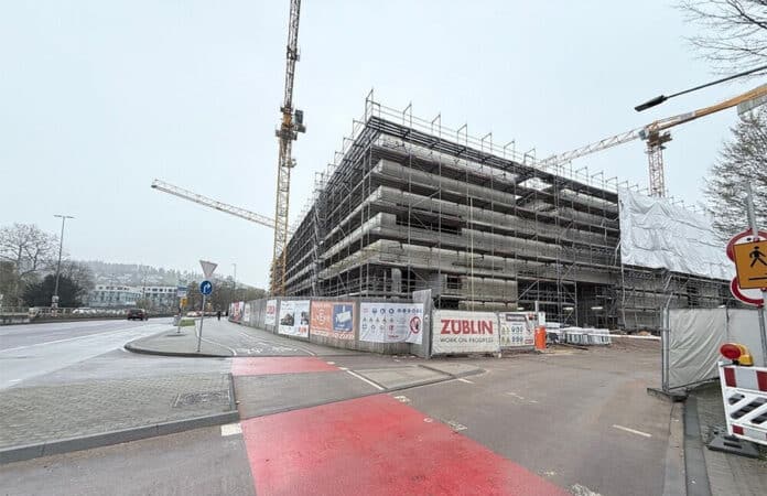 Die Bauarbeiten sind bereits weit fortgeschritten, zwei der drei großen Kräne werden nicht mehr benötigt und müssen daher demontiert und abtransportiert werden. Dazu muss während der Osterferien von Dienstag, 31. März, bis Mittwoch, 1. April, der an der Baustelle vorbeiführende Fuß- und Radweg gesperrt werden.