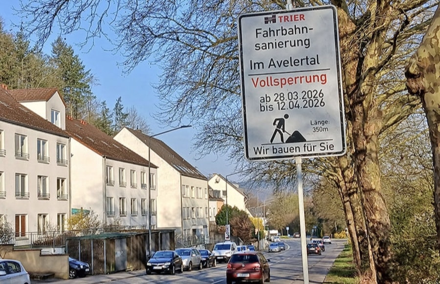 TRIER. Am kommenden Samstag, 28. März, beginnt die angekündigte Fahrbahnsanierung der Straße Im Avelertal. Dafür wird die stark frequentierte Verbindung zwischen den Höhenstadtteilen und der Talstadt während der Osterferien bis voraussichtlich Sonntag, 12. April, gesperrt.
