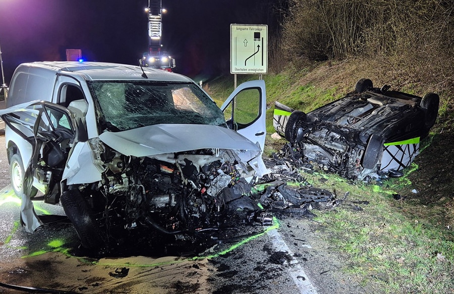 Die beiden Fahrer erlitten demnach tödliche Verletzungen. Eine Beifahrerin wurde mit schweren Verletzungen per Rettungshubschrauber in eine Klinik geflogen. Die Straße bleibt für die Unfallaufnahme und die Ermittlungen zur Ursache vorerst voll gesperrt.