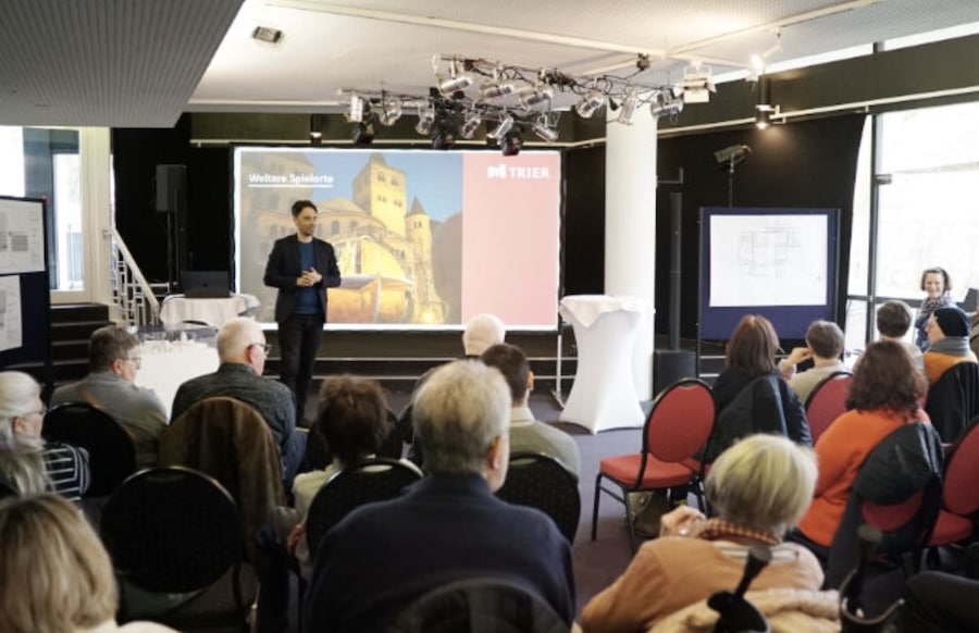 Als weitere Spielorte des Theaters während seiner Sanierung nannte Intendant Wenzel die Promotionsaula des Bischöflichen Priesterseminars sowie die ehemaligen Kirchen Maximin und Paulus sowie die Kirche in Heiligkreuz.