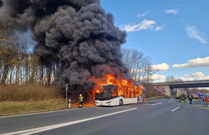 Gegen 14.45 Uhr wurde die Polizei über einen brennenden Linienbus im Kräwerweg informiert. Bei Eintreffen der ersten Einsatzkräfte stand das Fahrzeug bereits in Vollbrand. Die Feuerwehr Andernach leitete umgehend umfassende Löschmaßnahmen ein. Um die Sicherheit der Einsatzkräfte und Passanten zu gewährleisten, musste der Kräwerweg während der Arbeiten vollständig gesperrt werden.