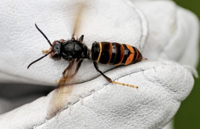 Laut Angaben des Naturschutzbundes Nabu breitet sich die aus Südostasien stammende Hornissenart seit Anfang der 2000er Jahre in Europa aus, seit dem Jahr 2018 steht sie in der EU auf der Liste der invasiven Arten. Von den heimischen Hornissen ist sie leicht zu unterscheiden: Die Asiatische Hornisse ist kleiner, hat einen dunklen Körper und gelbe Füße.