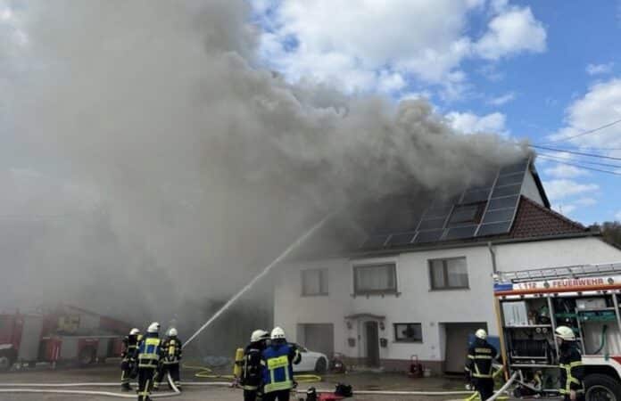 Eine weitere Person im Haus brachte sich den Angaben zufolge rechtzeitig in Sicherheit. Der Brand sei der Feuerwehr gegen 8.45 Uhr gemeldet worden. Ein aufmerksamer Verkehrsteilnehmer habe zunächst die Rauchentwicklung beim Vorbeifahren bemerkt. Er habe dann die Haustür des Anwesens eingetreten und die Bewohner gewarnt, berichteten die Einsatzkräfte.