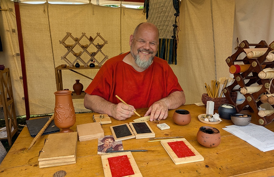 Vom 1. bis 3. Mai haben Besucherinnen und Besucher die Gelegenheit, römischen Handwerkern über die Schulter zu schauen und selbst aktiv zu werden. Ob Weben, Bogenbau, Kochen in der Feldküche oder Schreiben in einer römischen Schreibstube – an vielen Stationen darf ausprobiert und mitgemacht werden. Im Nachbau einer römischen Weinkelter können Kinder mit den Füßen Trauben stampfen oder beim Edelsteinschleifer ihren eigenen Stein polieren. Da Pferdeausbildung zur Römerzeit ebenso zum Handwerk gehörte, sind auch Pferde bei der Bodenarbeit zu sehen. Die Präsentation keltischen Handwerks weitet den Blick auf die Vorgänger der Römer in der Region aus.