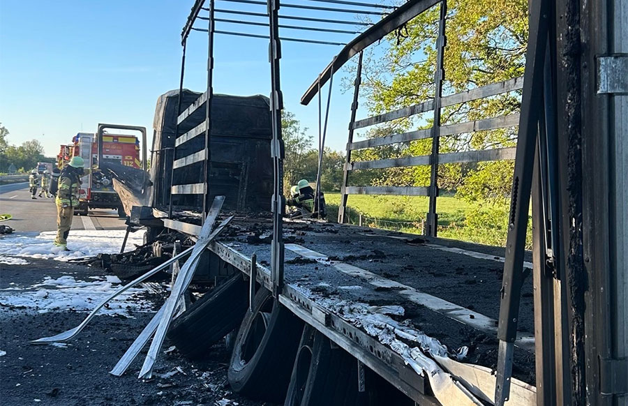 Die Flammen hätten dann auf trockene Vegetation neben der Autobahn übergriffen, etwa 100 Quadratmeter Waldfläche seien in Brand geraten. Für die Löscharbeiten wurde die A61 in Richtung Norden voll gesperrt. Der Lastwagen brannte den Angaben nach komplett aus.