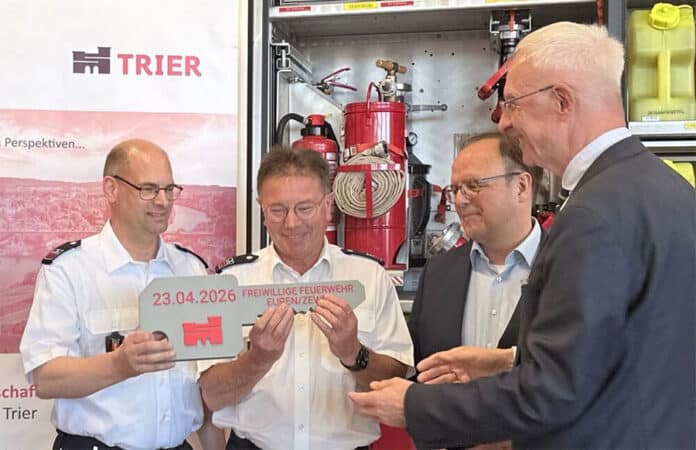 Feuerwehrdezernent Britten wies darauf hin, dass das neue Gerätehaus mehr als Beton, Stahl und Technik sei. „Wir übergeben hier einen Ort der Einsatzbereitschaft, einen Ort der Kameradschaft und einen Ort, der ein sichtbares Zeichen für Zusammenhalt ist.“ Dass die Feuerwehren aus den Nachbarorten Euren und Zewen heute gemeinsam unter einem Dach stehen, sei mit Blick auf die Geschichte alles andere als selbstverständlich. Gerade deshalb sei das gemeinsame Gerätehaus weit mehr als ein Bauprojekt. „Es ist ein starkes Symbol dafür, dass Tradition und Zukunft kein Widerspruch sind, sondern sich ergänzen.“