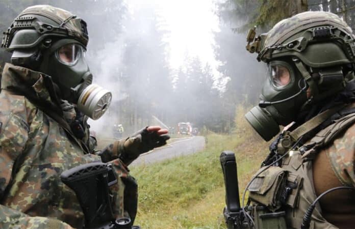 Nein. Die Truppe übt laut Bundeswehr mit Manövermunition. Dabei handelt es sich um Munition ohne Projektil – beziehungsweise Platzpatronen.