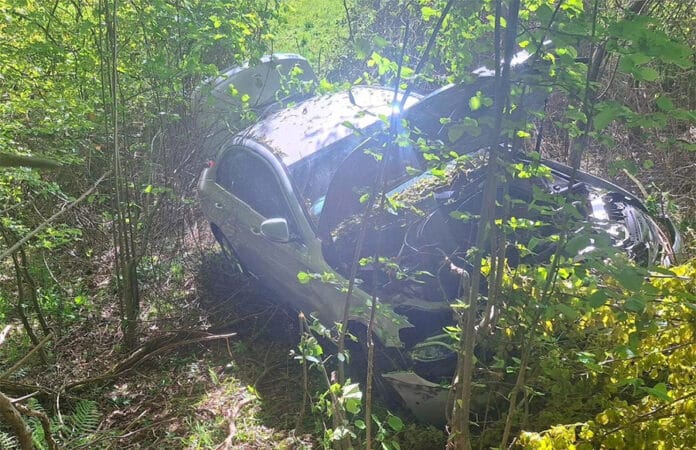 Ein 85-jähriger Fahrzeugführer kam vermutlich aufgrund gesundheitlicher Probleme nach rechts von der Strecke ab. Das Fahrzeug überquerte eine Distanz von knapp 300 Metern über eine Wiese und kam schließlich in einem tiefen Waldstück in einem Graben zum Stehen. Aufgrund der dichten Vegetation war das verunfallte Fahrzeug von der Bundesstraße aus nicht einsehbar.