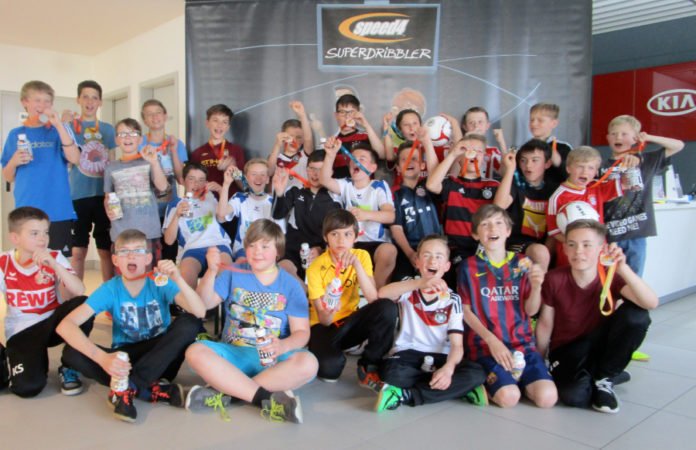 Bei Walter Metzen GmbH nahmen rund 100 Dribbler am Stadtfinale der KIA Superdribbler Meisterschaft teil. Vor Ort sorgten die rund 200 Eltern und Kinder für eine Atmosphäre wie bei einem großen Sportereignis. Die Begeisterung war den Kindern und den anfeuernden Eltern, Großeltern, Geschwistern und Freunden anzusehen. Mit dabei war auch die 1. Mannschaft des SV Monzelfeld, die in der Vorwoche in die A-Klasse aufgestiegen war. Der „Junior Chef“ des Autohauses, Michael Metzen, ist Spieler in dieser Mannschaft.